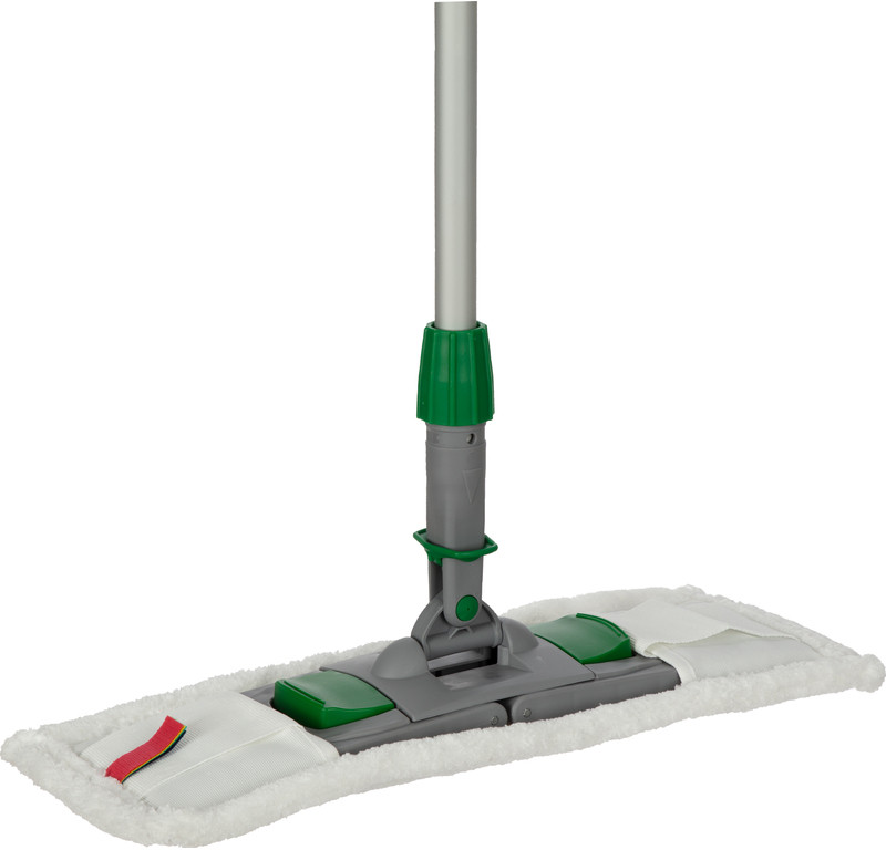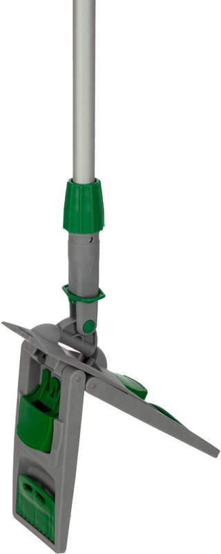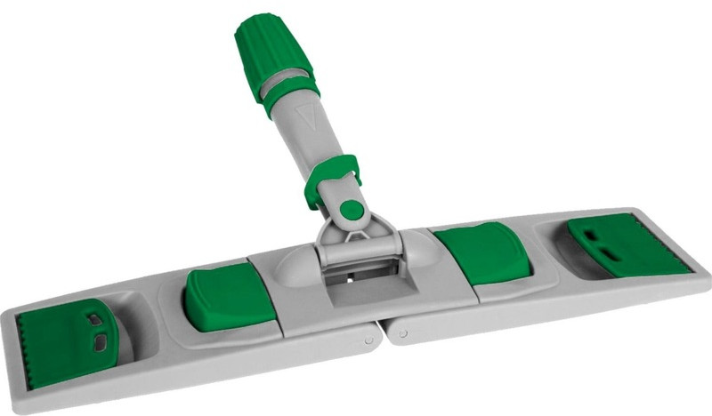 Держатель используется с плоскими мопами. Имеет универсальное крепление мопа, и подходит для мопов как с креплением «карман», так и «ухо». Оснащен шарнирным соединением, обеспечивающим хороший контакт мопа с поверхностью и свободу движений, что позволяет проводить уборку в труднодоступных местах: под витринами, стеллажами, полками, шкафами и прочей мебелью. Механизм складывания: защелка. Имеет цветовую кодировку по стандарту ХАССП, исключая возможность перекрестного загрязнения.