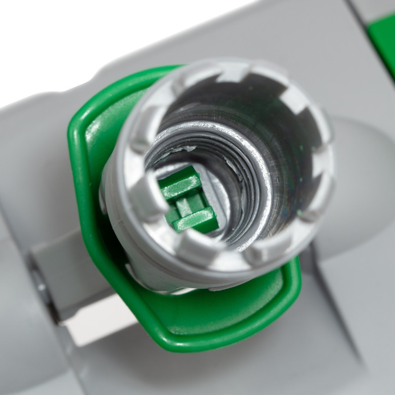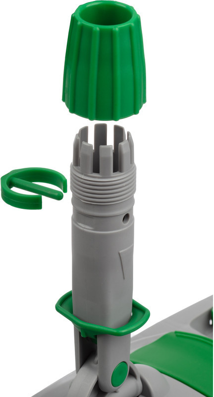 Рекомендации по использованию: перед началом работы убедитесь, что закручивающееся кольцо хорошо затянуто, а фиксатор и защелки не выпали и не сломаны. После окончания работы сполосните держатель струей проточной воды для удаления абразивных частиц из соединительного узла, просушите. Используется с плоскими насадками (мопами) соответствующего размера.