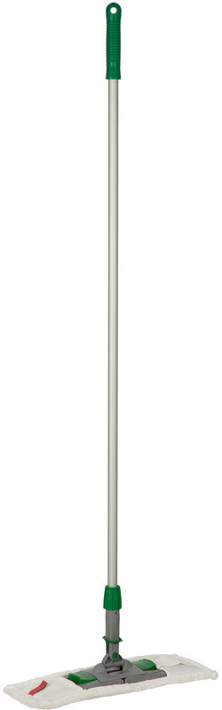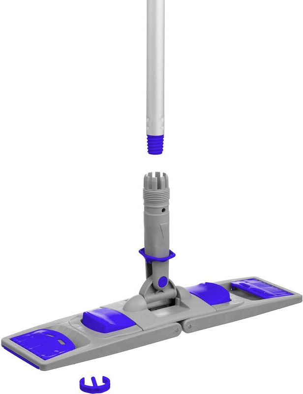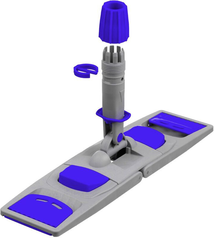 Держатель используется с плоскими мопами. Имеет универсальное крепление мопа, и подходит для мопов как с креплением «карман», так и «ухо». Оснащен шарнирным соединением, обеспечивающим хороший контакт мопа с поверхностью и свободу движений, что позволяет проводить уборку в труднодоступных местах: под витринами, стеллажами, полками, шкафами и прочей мебелью. Механизм складывания: защелка. Имеет цветовую кодировку по стандарту ХАССП, исключая возможность перекрестного загрязнения.