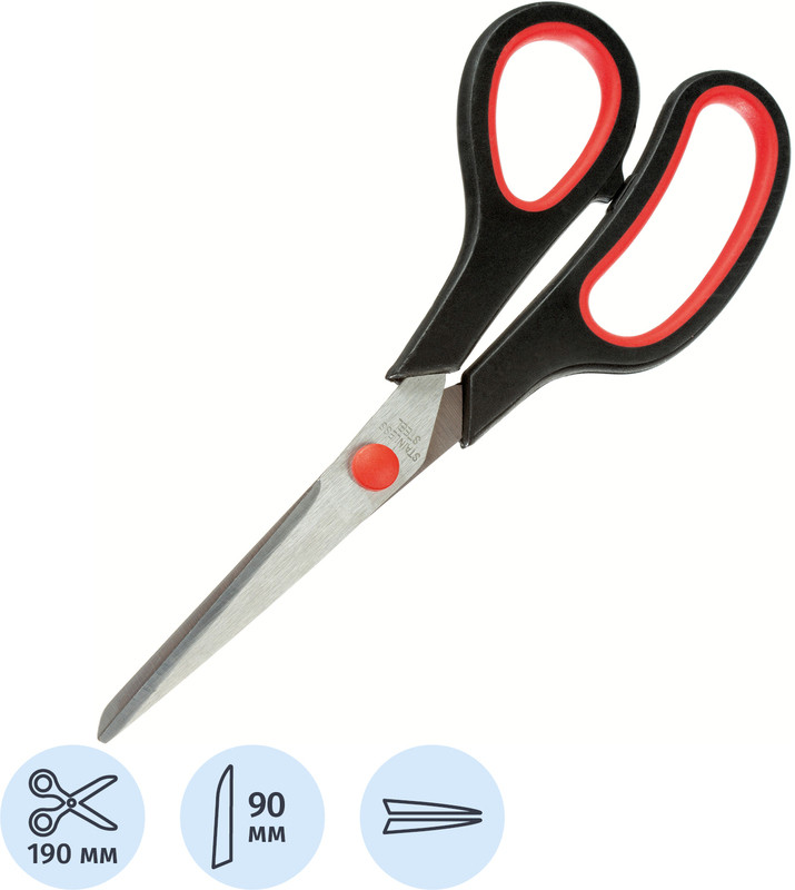 💳 Оплатить за товар можно при получении 🇰🇿 Есть бесплатная доставка по Казахстану от 1 дня 🎁 Копите бонусы с каждой покупки Канцелярские ножницы (офисные) Выбор есть эргономичного дизайна, изготовленные из нержавеющей стали. Пластиковые ручки черного цвета имеют анатомическую форму для естественного положения инструмента в руке. Прорезиненные вставки красного цвета предотвращают скольжение пальцев. Длина ножниц — 19 см. Изделие представлено на картонной подложке. |