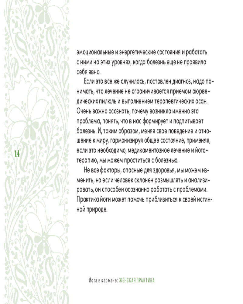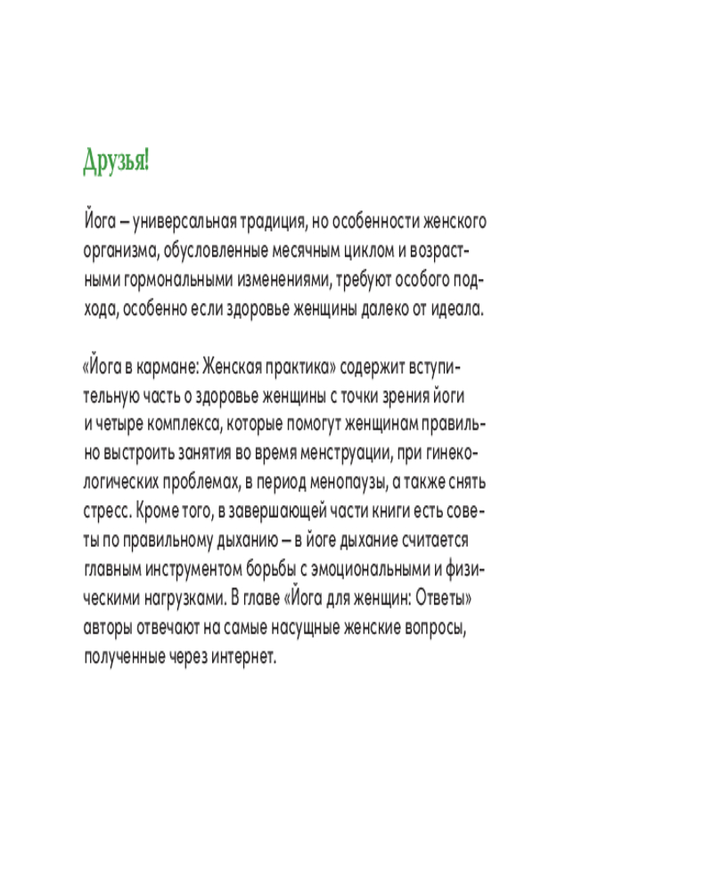 💳 Оплатить за товар можно при получении 🇰🇿 Есть бесплатная доставка по Казахстану от 1 дня 🎁 Копите бонусы с каждой покупки Серия: Йога в кармане Интерес к занятиям йогой в России растёт с каждым днем, и женщины составляют сегодня как минимум 2/3 занимающихся. Женская практика в йоге, как и в других комплексах духовного и физического оздоровления, имеет свою специфику. |
