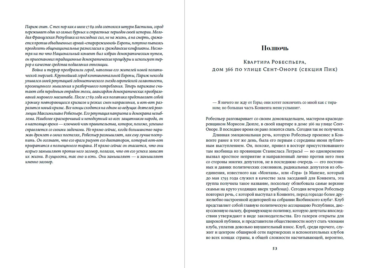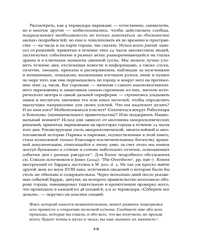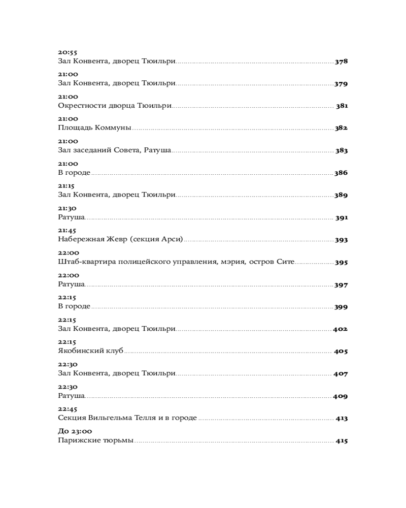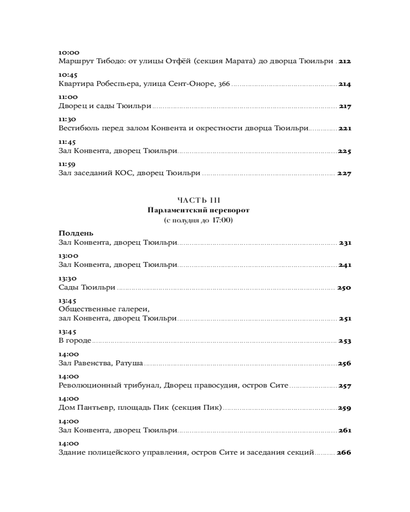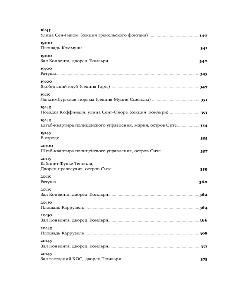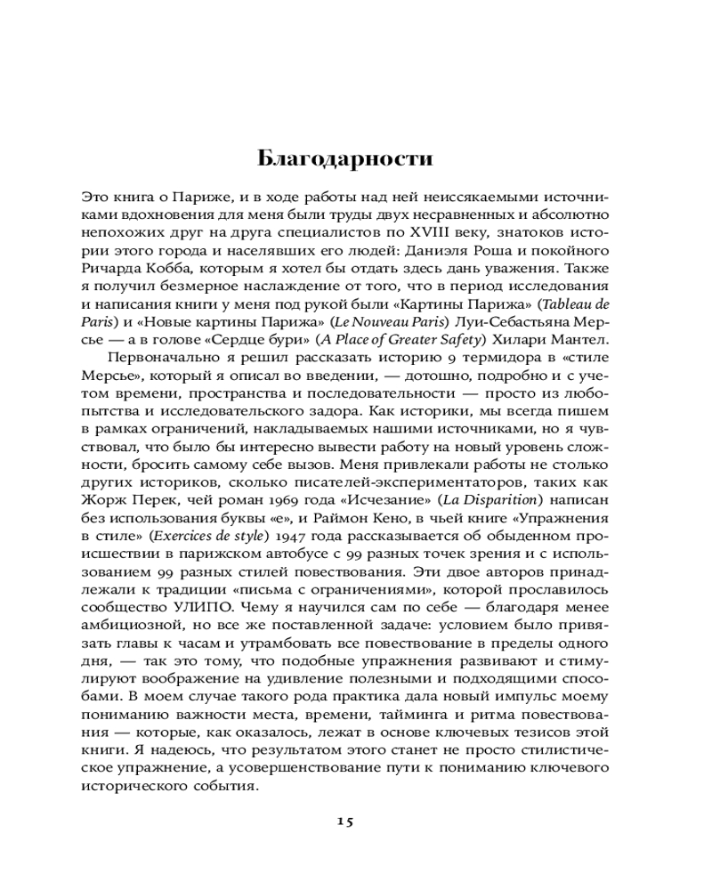 Увлекательная, великолепно выстроенная, исключительно информативная и, наконец, написанная остроумным автором, эта книга — настоящая «машина времени»: перед вами пройдет головокружительно динамичная серия сцен, разворачивающихся в разных местах Парижа и складывающихся в живой репортаж. Лезвие гильотины отсекает головы одну за другой, часовая стрелка бежит, заговоры возникают и лопаются, сотни действующих лиц совершают героические и фарсовые поступки и вынужденно импровизируют — и никто не знает, кому суждено выжить.