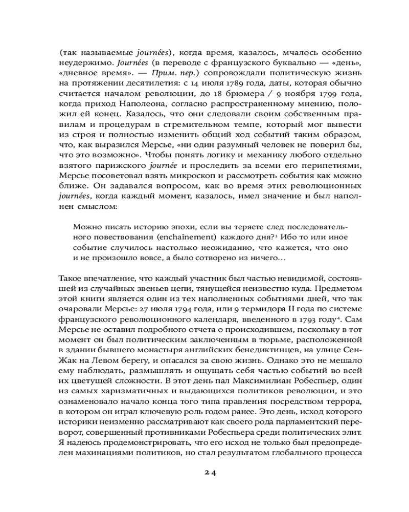 Обработав тысячи источников — от полицейских докладов до театральных афиш — британский историк Колин Джонс представил хронику 27 июля 1794 года, «Девятого термидора»: поворотного момента и, видимо, самого безумного дня в истории Великой Французской революции, когда был низложен Максимилиан Робеспьер.