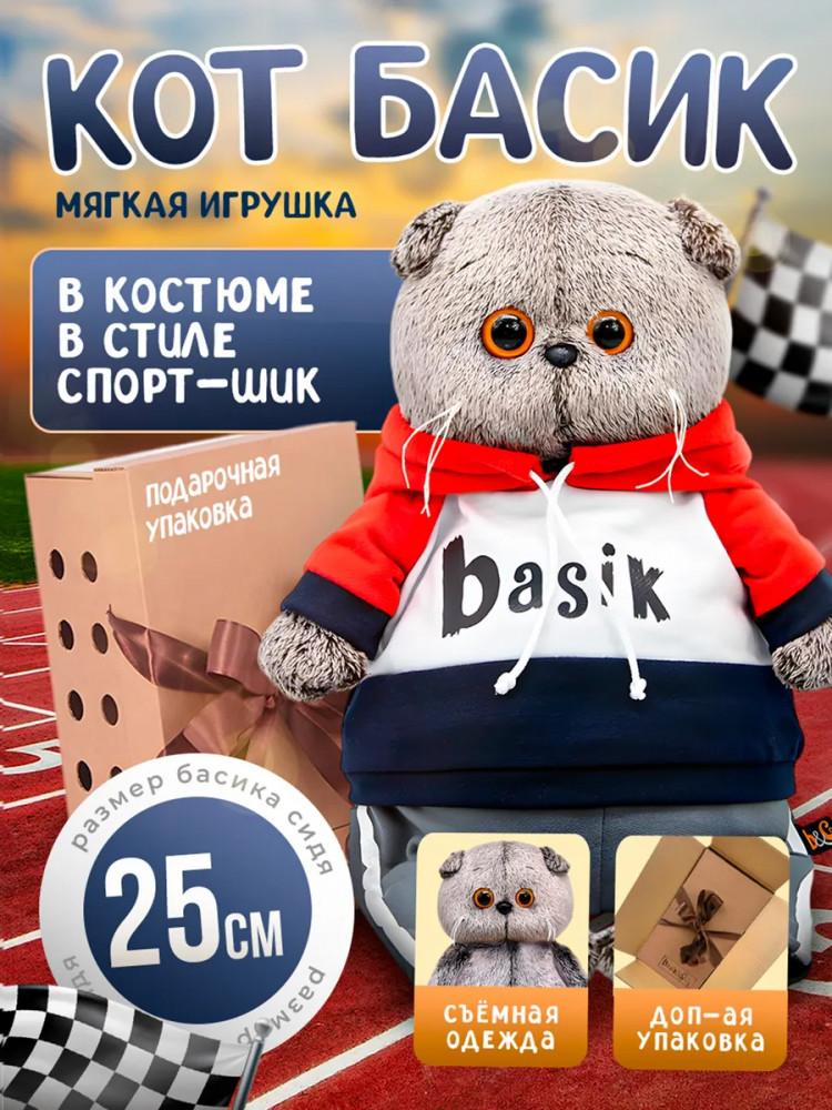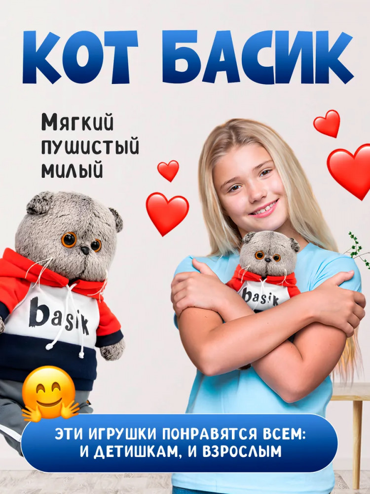 Budi Basa Игрушка мягкая «Басик в костюме в стиле спорт-шик»В данный момент этот товар отсутствует в продаже. Возможно, у нас найдется аналогичный или похожий товар здесь. Кот Басик в супермодном костюме в стиле спорт-шик из плотного х/б трикотажа графитового, алого, серого и белого цветов. Толстовка сшита с капюшоном и принтом «basik». Штанишки выполнены с белыми лампасами. |