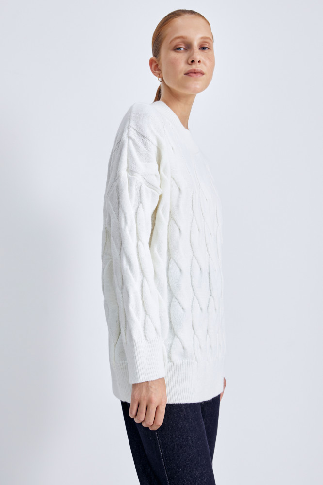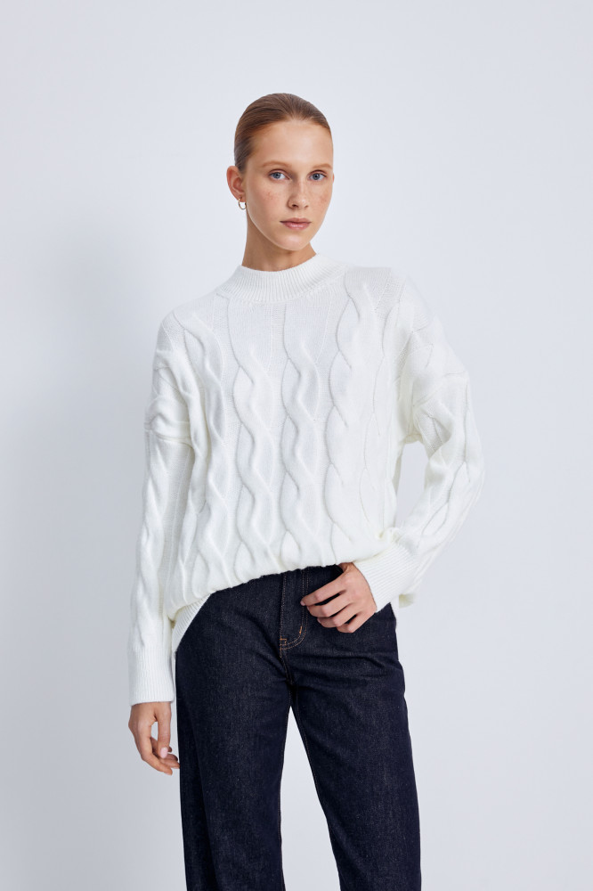 Стильный, удлиненный, отличного качества свитер. Крупная, красивая вязка!