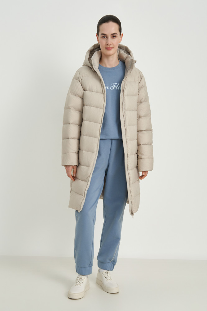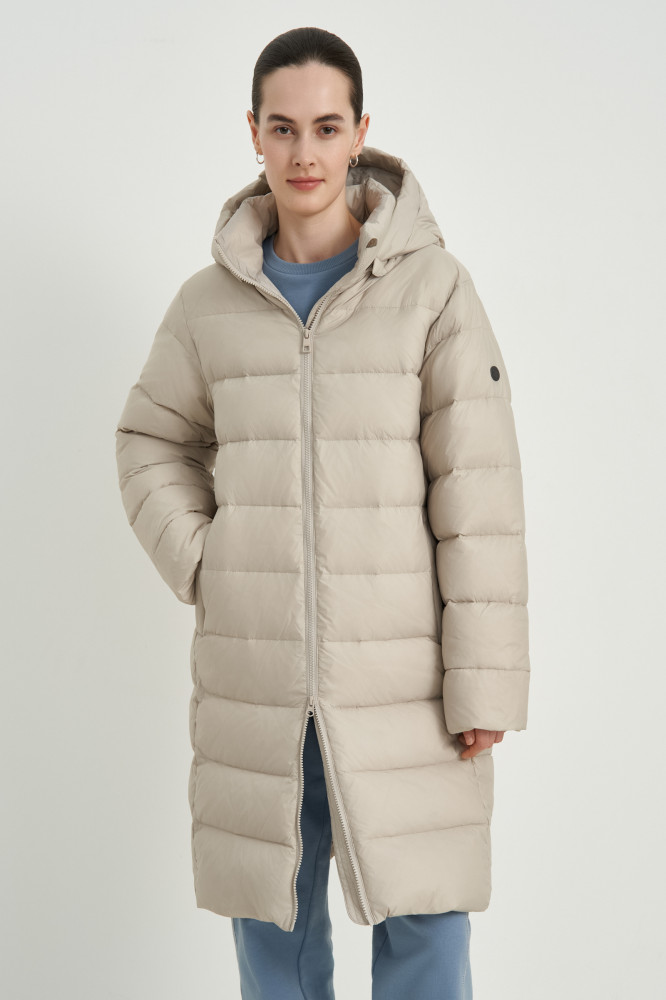 Женское зимнее пальто поможет утеплить любой стильный образ, добавив ему комфорта и уюта. Модель создана для защиты от суровых морозов до -25 градусов. Пальто выполнено из высококачественной стеганной ткани, которая не только придает ему современный вид, но и обеспечивает отличную теплоизоляцию благодаря утеплителю из утиного пуха. Съемный капюшон обеспечивает защиту от осадков и ветра, позволяя адаптировать пальто под любые погодные условия. Благодаря водоотталкивающей пропитке в куртке можно смело выходить на улицу даже в дождливую или снежную погоду. Прямой силуэт обеспечивает свободу движений и комфорт, а однотонный дизайн делает пальто идеальным выбором для создания повседневных образов.