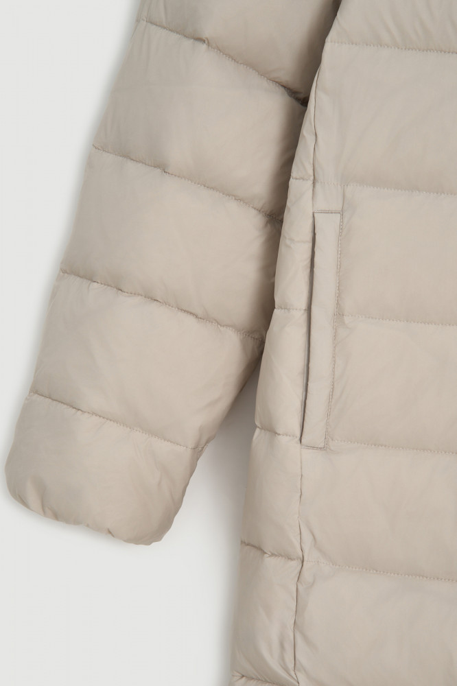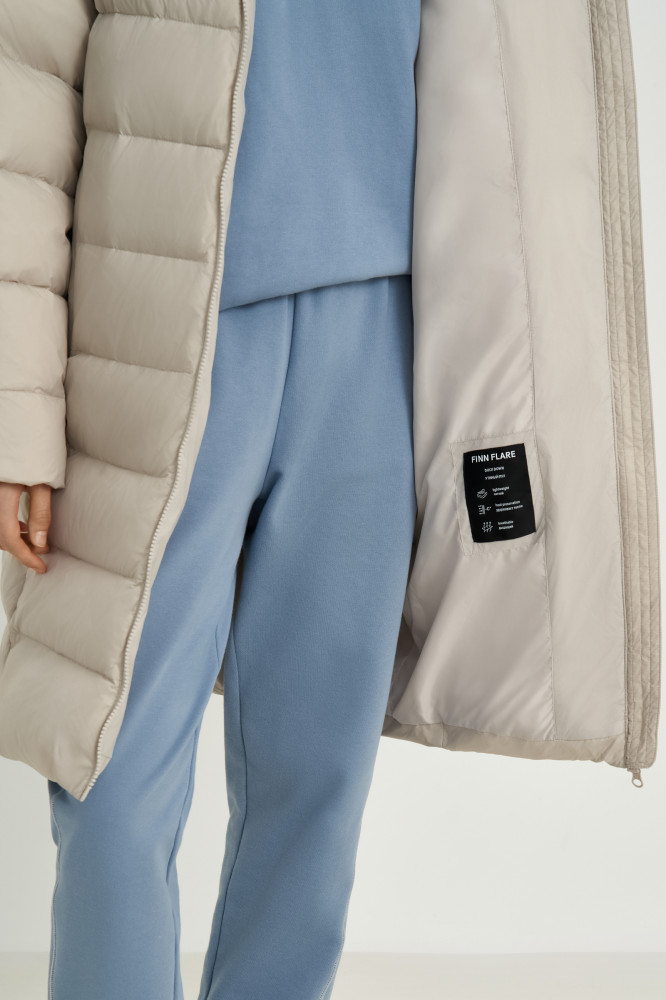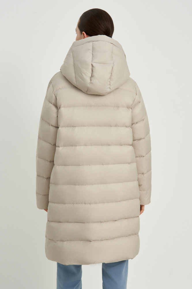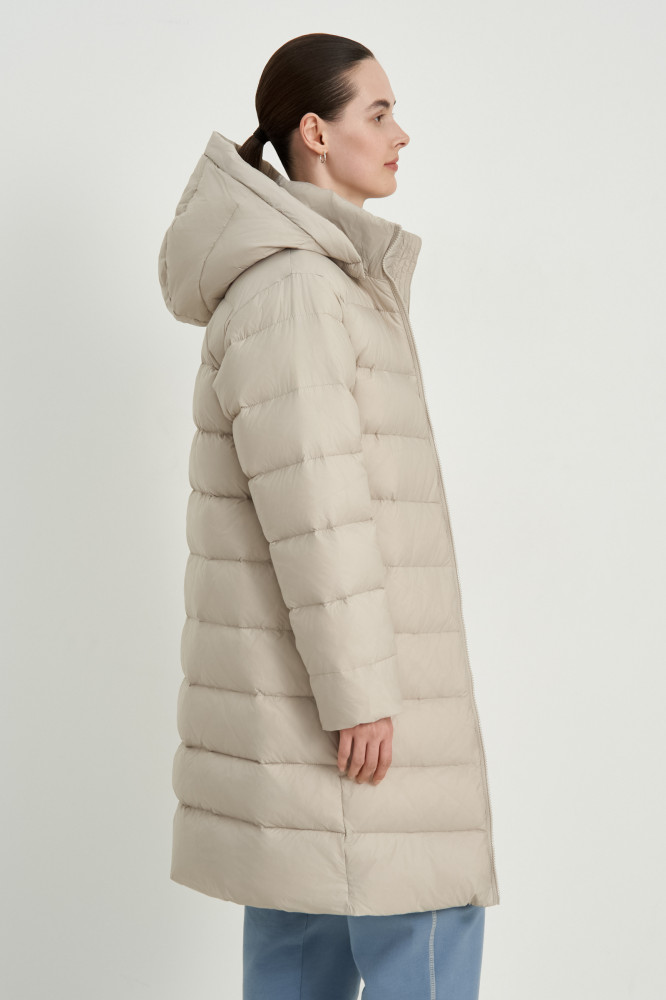Женское зимнее пальто поможет утеплить любой стильный образ, добавив ему комфорта и уюта. Модель создана для защиты от суровых морозов до -25 градусов. Пальто выполнено из высококачественной стеганной ткани, которая не только придает ему современный вид, но и обеспечивает отличную теплоизоляцию благодаря утеплителю из утиного пуха. Съемный капюшон обеспечивает защиту от осадков и ветра, позволяя адаптировать пальто под любые погодные условия. Благодаря водоотталкивающей пропитке в куртке можно смело выходить на улицу даже в дождливую или снежную погоду. Прямой силуэт обеспечивает свободу движений и комфорт, а однотонный дизайн делает пальто идеальным выбором для создания повседневных образов.