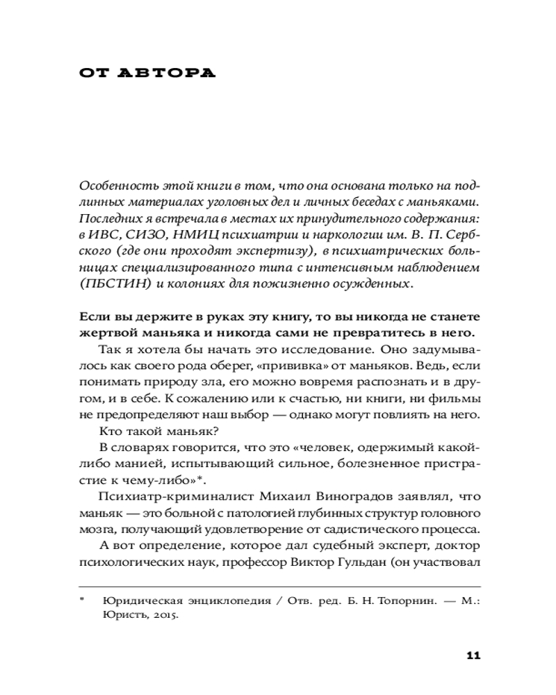 💳 Оплатить за товар можно при получении 🇰🇿 Есть бесплатная доставка по Казахстану 🎁 Копите бонусы с каждой покупки Новая книга известного российского журналиста и правозащитника Евы Меркачёвой посвящена серийным убийствам. Она — о российских маньяках. Исторический и архивный материал, уникальные иллюстрации, описание уголовных дел, действий маньяков и следствия, комментарии экспертов. Рассказывая максимально подробно страшные реальные истории, происходившие зачастую незаметно для большинства в нашей обыденной действительности, автор обстоятельно разбирается в том, откуда берутся маньяки, как их распознать, как предотвратить превращение человека в маньяка и как самому не стать жертвой злодеяния. |