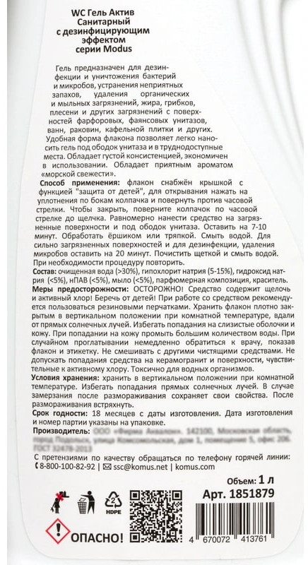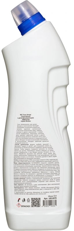 Luscan Чистящее средство для сантехники дезинфицирующее «Гель актив с хлором»