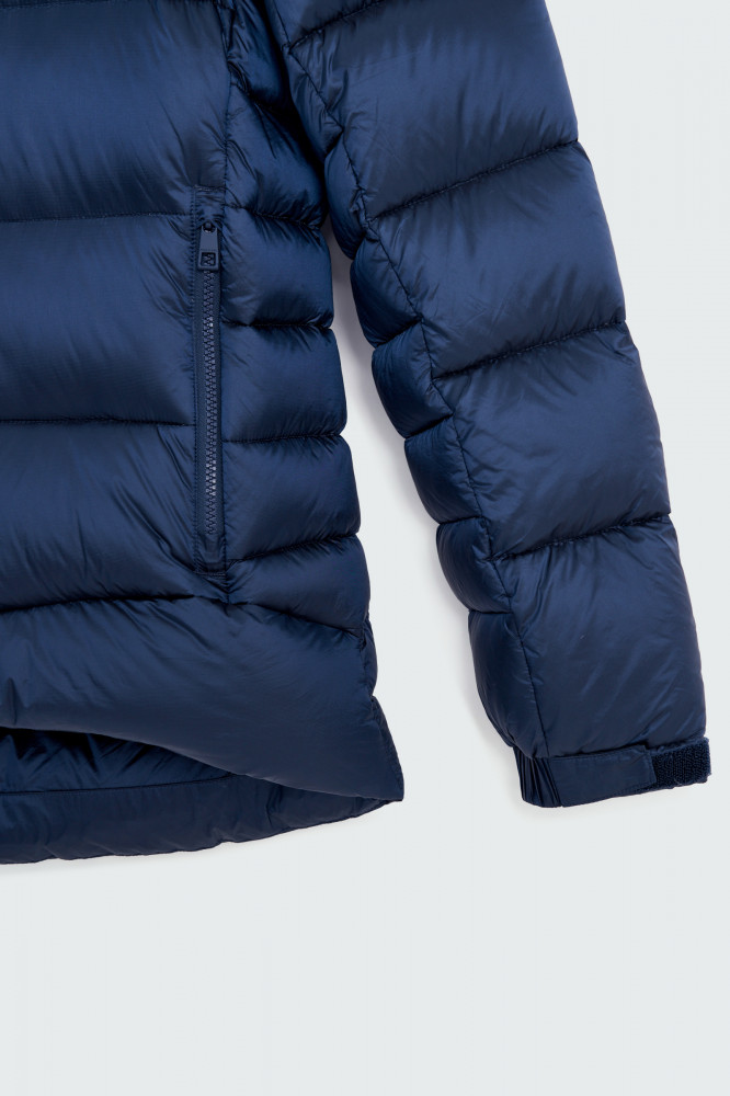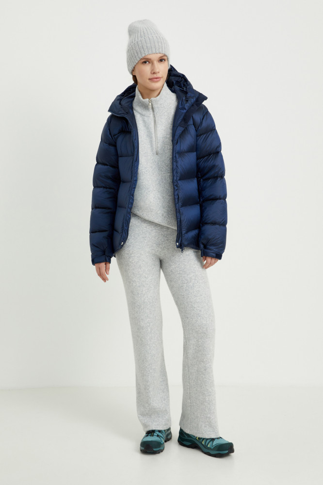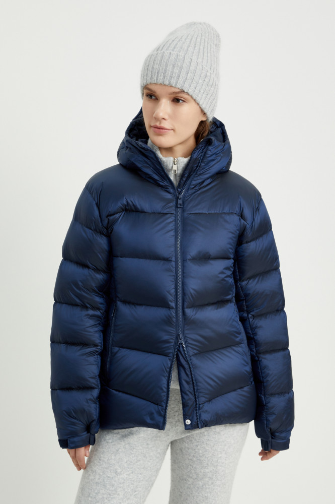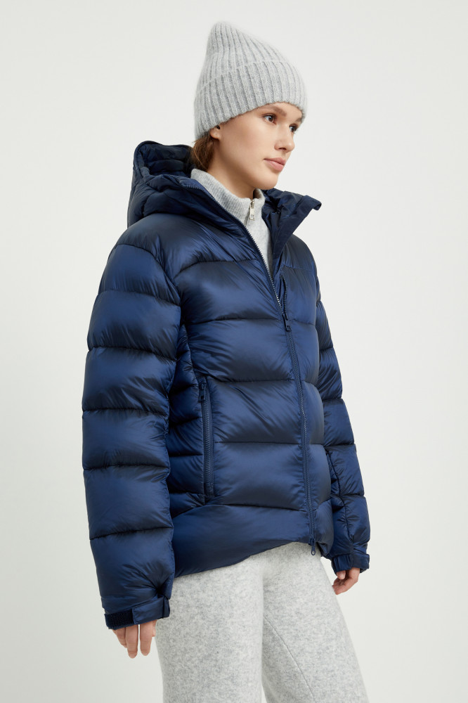 Самая теплая модель пуховика в нашей коллекции: защита от холода при температуре до −40°C благодаря качественному утеплителю из утиного пуха с Fill Power 800 и дополнительному слою пух-пакета со стороны подкладки. Материал верха — легкая и прочная ткань с армирующими нитями, которые препятствуют разрывам. Благодаря водоотталкивающим и ветрозащитным пропиткам куртка хорошо защищает от влаги и холодного ветра. Глубокий капюшон с козырьком в сочетании с высоким воротником-стойкой создают эффект теплого шлема. Металлическая струна по краю козырька позволяет изменять его форму для более эффективной защиты от ветра. Практичное и изящное решение для регулировки объема капюшона — скрытые фиксаторы, которыми удобно пользоваться даже в перчатках, и при этом концы шнурков не мешают с лицевой части. Продуманные детали для защиты от мороза и ветра: удлиненная спинка, планка вдоль молнии, регулируемые манжеты и низ пуховика, мягкие карманы и внутренняя часть ветрозащитной планки. Такой пуховик отлично подходит не только для самых морозных дней в городе, но и для зимних путешествий.