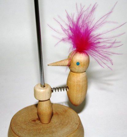 Пружина отходит немного, и птица не стучит по стержню. Пришлось мужу выгибать ее сильно, чтобы игрушка функционировала, как надо. И со временем работы все рано отходит. А так, игрушка очень понравилась.