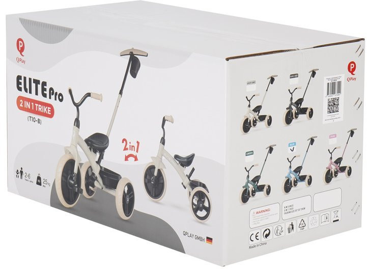 У трехколесного велосипеда QPlay Elite Trike стильная и прочная металлическая рама. Большие устойчивые к проколам колеса из EVA идеально подходят для поездок маленьких исследователей. Высоту сиденья можно легко регулировать, чтобы ребенку было комфортно крутить педали на каждом этапе его подрастания. Сзади велосипеда расположена вместительная и прочная корзина для игрушек и полезных мелочей. Когда ребенок достаточно подрастет, родительскую ручку можно будет снять — получится стильный трёхколёсный велосипед, на котором он сможет кататься уже самостоятельно.