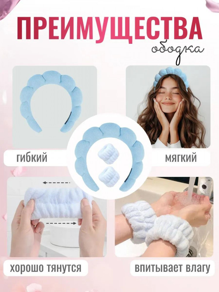Ободок для умывания с нарукавникамиВ данный момент этот товар отсутствует в продаже. Возможно, у нас найдется аналогичный или похожий товар здесь. Стильный ободок для волос незаменимый аксессуар для каждой девушки! Этот универсальный помощник станет вашим любимым бьюти-инструментом для создания безупречного образа. Мягкий тканевый ободок нежно обхватывает голову, надежно фиксируя волосы во время макияжа и умывания. Его широкий дизайн обеспечивает комфортную посадку, а специальная структура материала позволяет использовать его как для сухих, так и для влажных процедур. |
