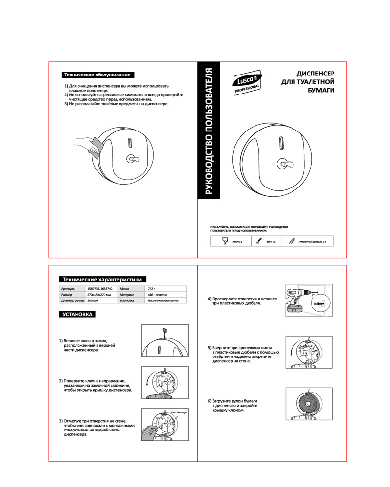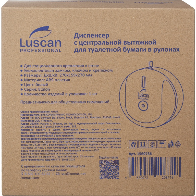 Luscan Professional Диспенсер для туалетной бумаги с центральной вытяжкой «T8»
