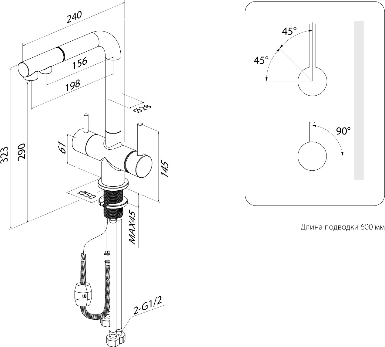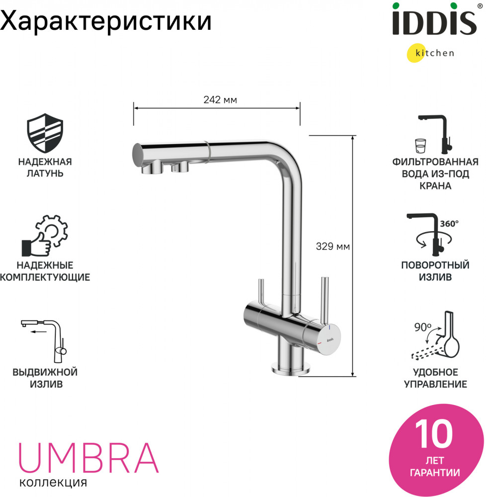 • удобное управление водопроводной и фильтрованной водой с помощью двух отдельных ручек;