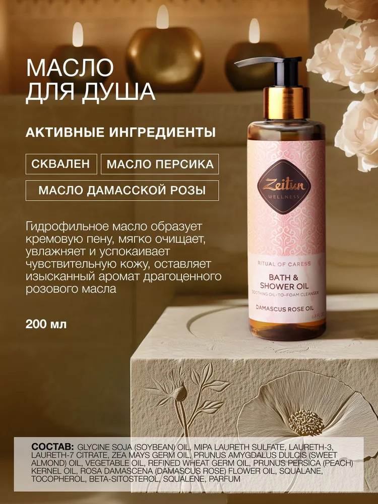 Масло для тела: Glycine Soja (Soybean) Oil, MIPA-Laureth Sulfate, Laureth-3, Laureth-7 Citrate, Zea Mays (Corn) Germ Oil, Prunus Amygdalus Dulcis (Sweet Almond) Oil, Refined Wheat Germ Oil, Butyrospermum Parkii (Shea) Butter, Squalane, Prunus Amygdalus Amara (Bitter Almond) Kernel Oil, Tocopherol, Beta-Sitosterol, Squalene, Parfum.