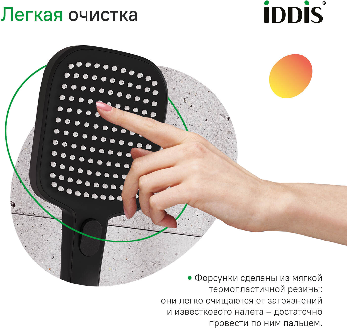 • форсунки сделаны из мягкой термопластичной резины: они легко очищаются от загрязнений и известкового налета — достаточно провести по ним пальцем;