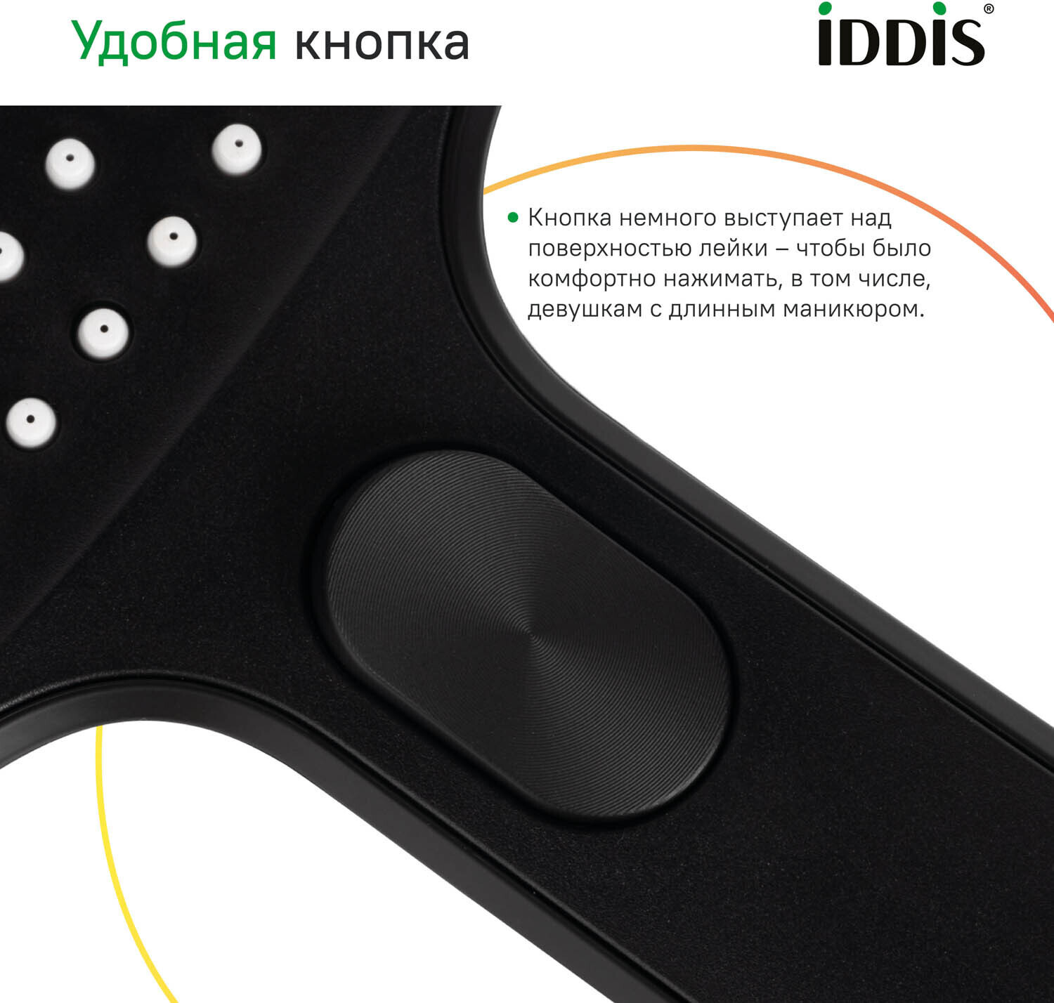 • переключение режимов осуществляется удобной кнопкой. кнопка не утоплена, а чуть выступает над поверхностью лейки — чтобы было комфортно, в том числе, девушкам с длинными ногтями;