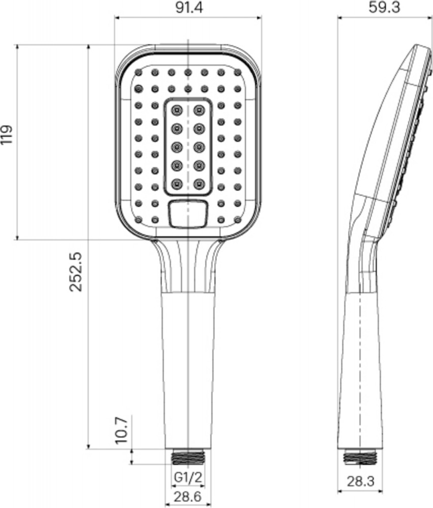 Размер лица ручной лейки: 119×91 мм.