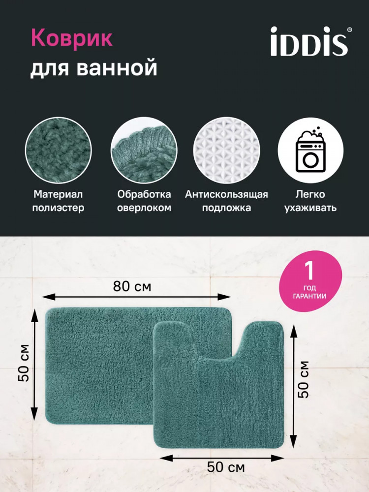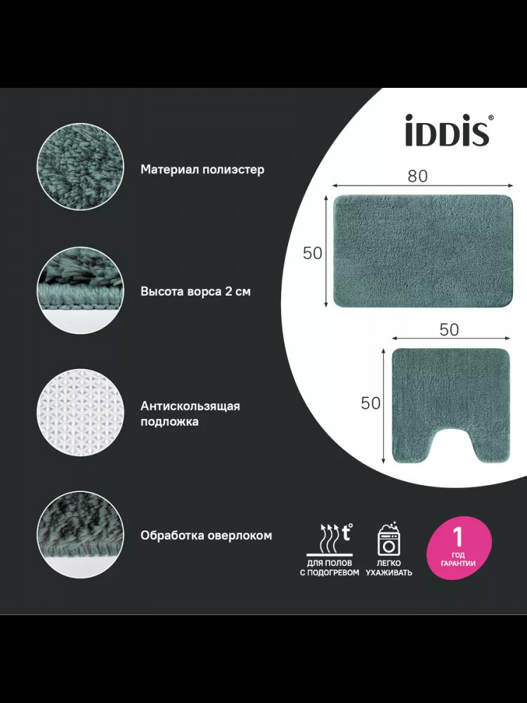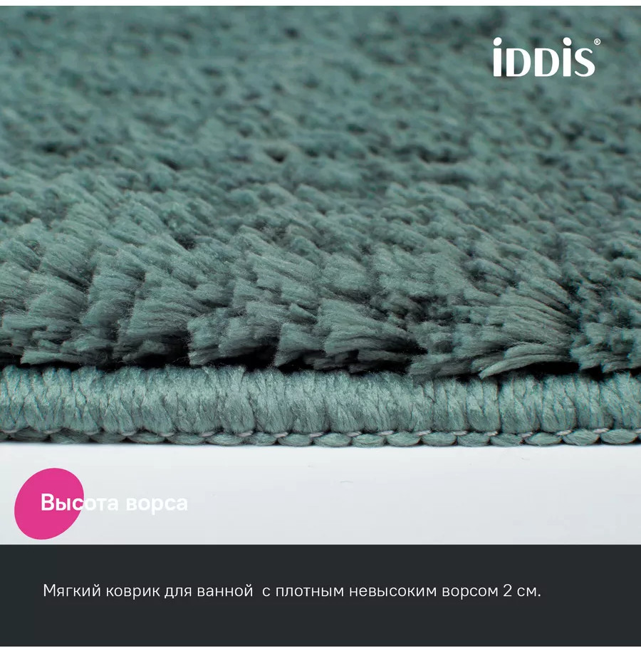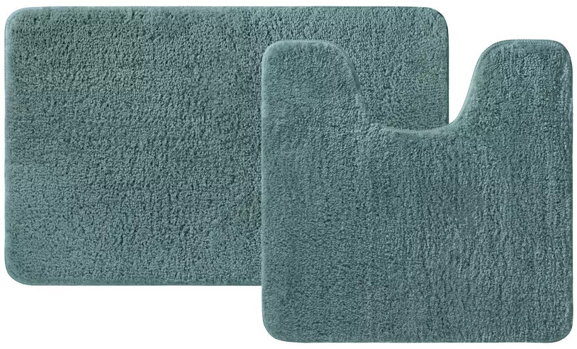 Набор из двух мягких ковриков для ванной хвойного зеленого цвета с плотным высоким ворсом (2 см), очень приятных на ощупь. Стриженый ворс из микрофибры отлично держит форму, легко чистится и быстро сохнет. Коврики предназначены для ванной и для туалета (маленький коврик имеет вырез под унитаз).