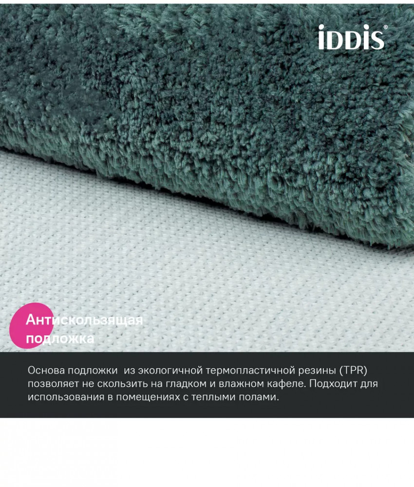 • коврики в ванную противоскользящие: основа из экологичной термопластичной резины (TPR) позволяет не скользить на гладком и влажном кафеле. Подходят для использования в помещениях с теплыми полами;