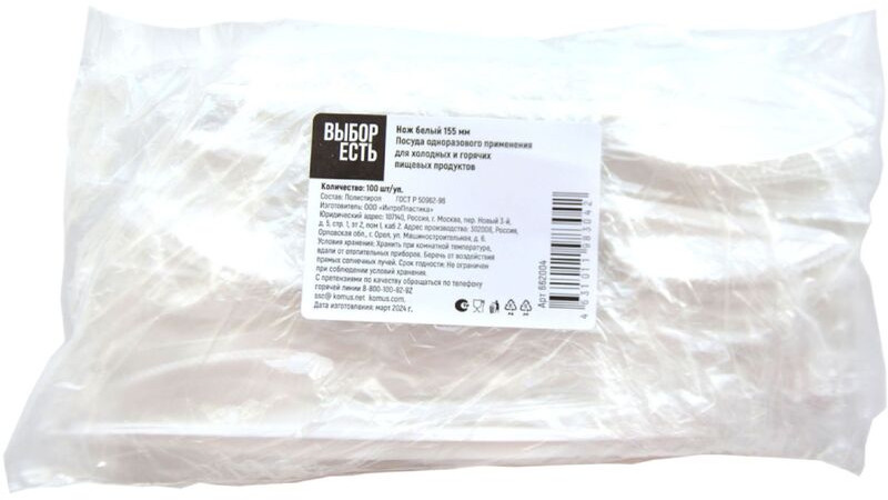 💳 Оплатить за товар можно при получении 🇰🇿 Есть бесплатная доставка по Казахстану от 1 дня 🎁 Копите бонусы с каждой покупки Нож одноразовый белого цвета изготовлен из полистирола. Подходит для холодных и горячих блюд. Максимальная температура используемых пищевых продуктов — 75°С. Ножи подходят для оформления банкетов, выездных праздников, для кафе быстрого обслуживания и т. д. Длина составляет 155 мм. В упаковке содержится 100 штук. Данная продукция обладает пониженной плотностью/весом, при некорректной транспортировке или использовании возможна деформация и механические повреждения (разрыв). |