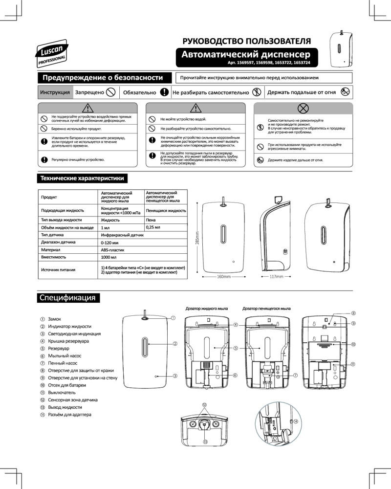 Luscan Professional Дозатор для жидкого мыла сенсорный
