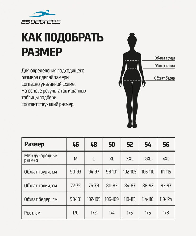 | Бренд 25 Degrees делает акцент на комфорте и функциональности во время тренировок. Наш ассортимент включает в себя стильную одежду, удобные ласты и различные аксессуары, предназначенные для ваших максимально продуктивных тренировок в воде. Весь ассортимент продукции создан в гармоничной цветовой палитре, что позволяет выглядеть стильно. У нас вы найдете широкий выбор одежды для плавания. Наши купальники, плавки и костюмы созданы с учетом стиля и комфорта, позволяя вам наслаждаться каждым... |