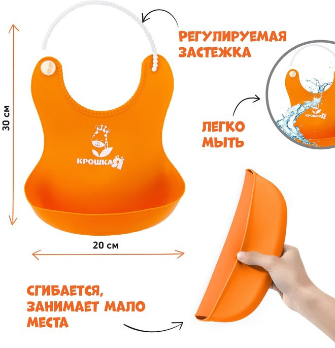 Крошка Я Нагрудник для кормления силиконовый с карманом «Жираф»