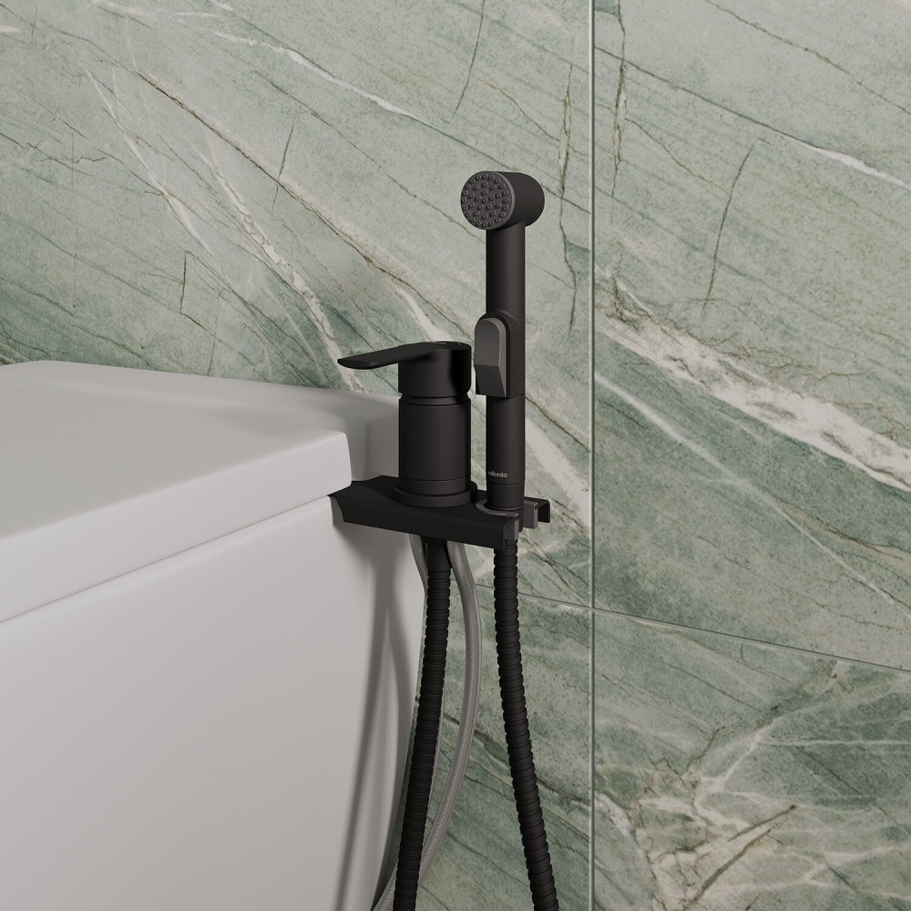 Компактное решение для помещений, где не предусмотрено место для встраиваемой сантехники или полноценного биде — черный смеситель с гигиенической лейкой Tidy. Он обеспечит дополнительный комфорт без лишних затрат на новый ремонт. Смеситель подходит для современных унитазов разного стиля и формы.