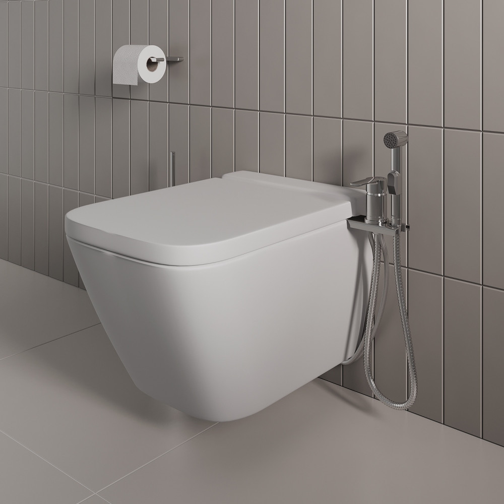 Компактное решение для помещений, где не предусмотрено место для встраиваемой сантехники или полноценного биде — черный смеситель с гигиенической лейкой Tidy. Он обеспечит дополнительный комфорт без лишних затрат на новый ремонт. Смеситель подходит для современных унитазов разного стиля и формы.
