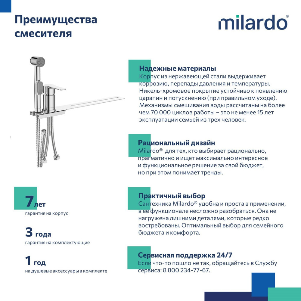 • гарантия на смеситель Milardo