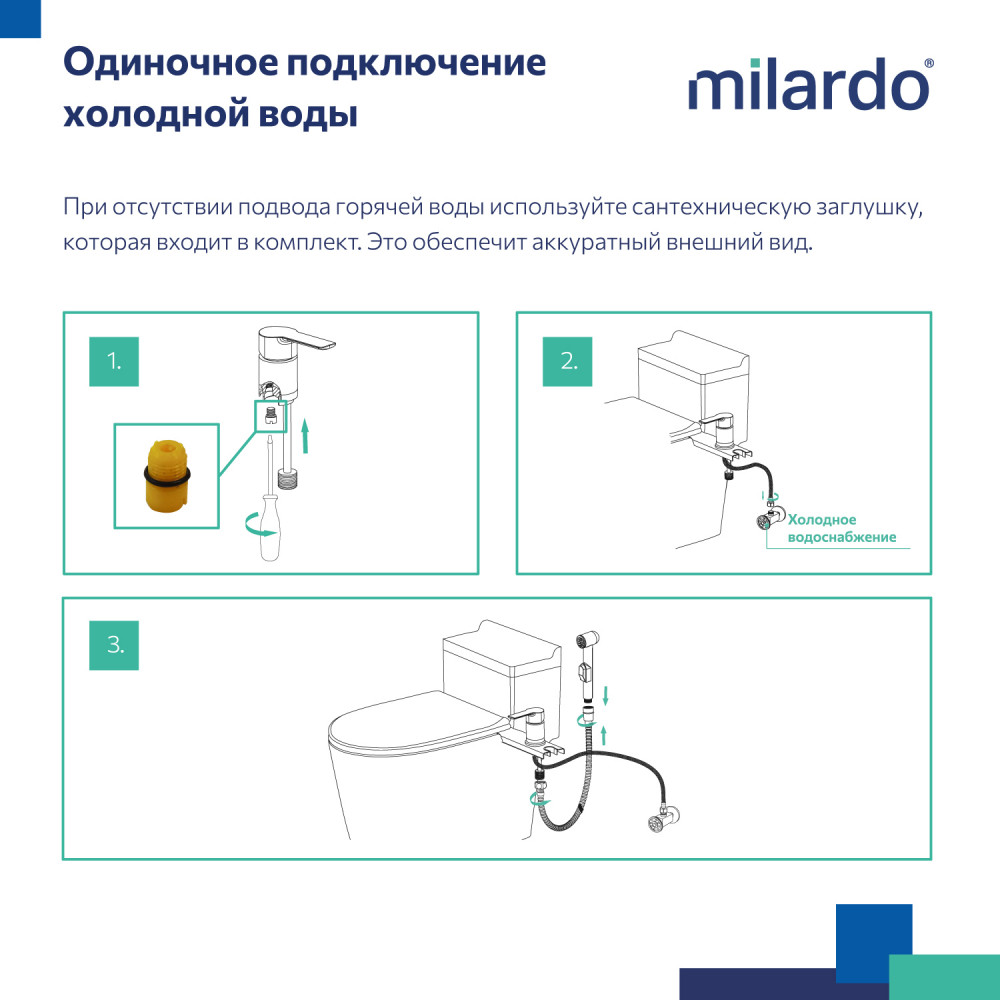 • гигиеническая лейка из ABS-пластика, душевой шланг (0.9 м), гибкая подводка и крепеж идут в комплекте. Для подключения только холодной воды потребуется сантехнический фитинг;