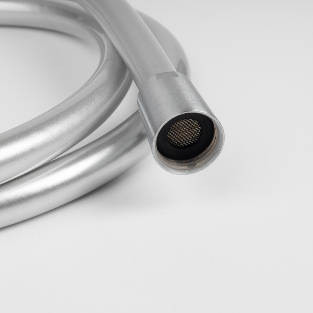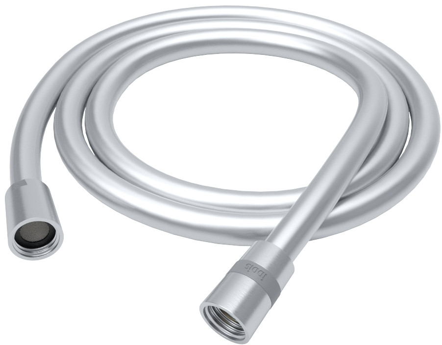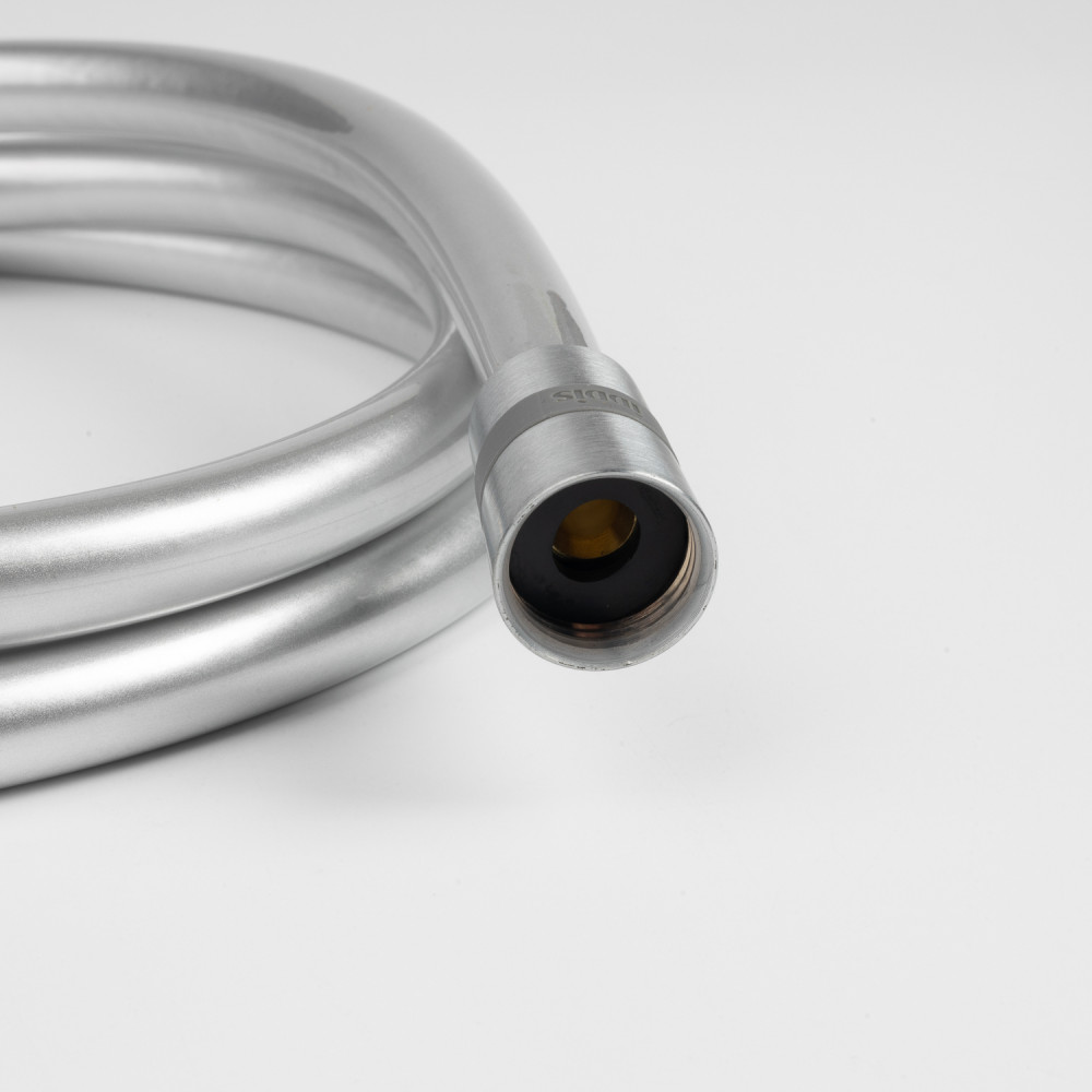 Стильный гладкий душевой шланг в оттенке матового хрома надежен и легко выдерживает активную ежедневную эксплуатацию. Универсальное соединение G ½" позволяет использовать с любой лейкой в тон. Стандартная длина 1.5 м.