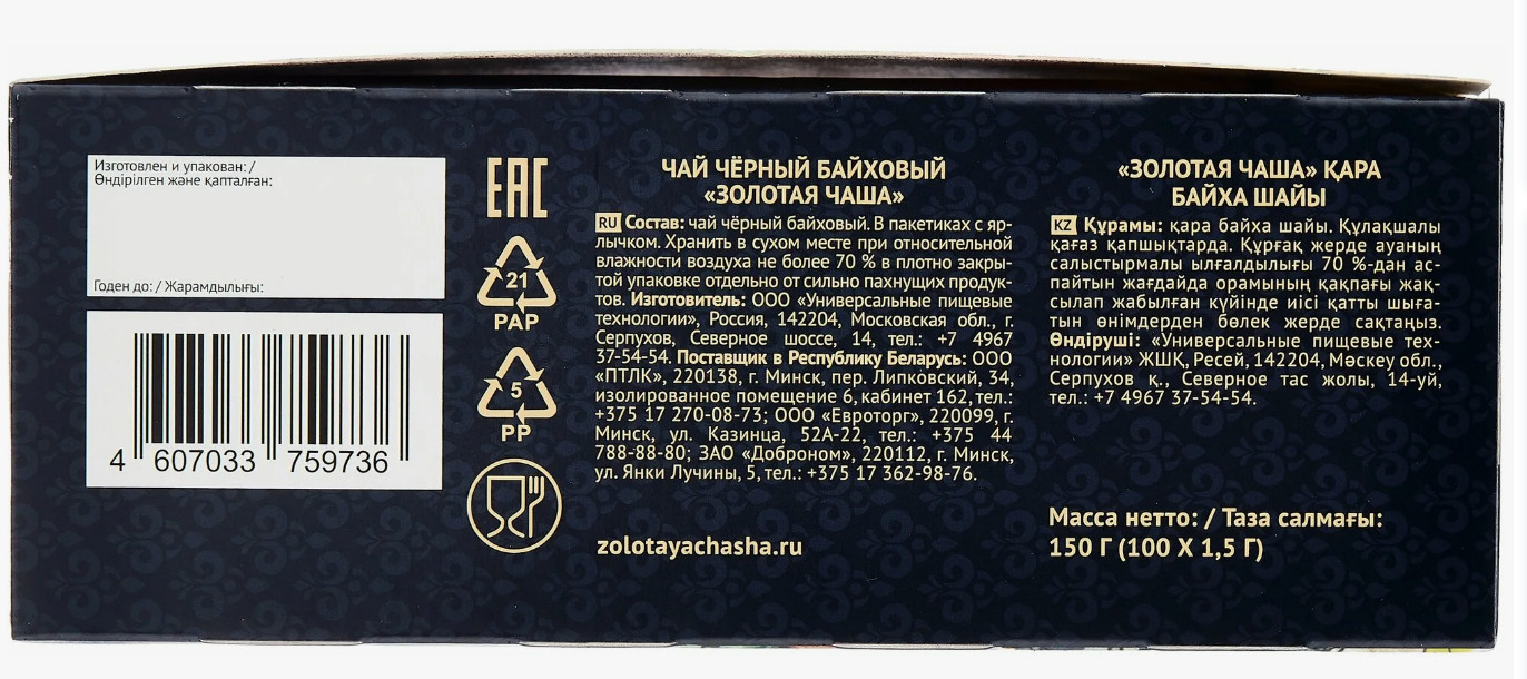 Золотая чаша Чай черный «Байховый»