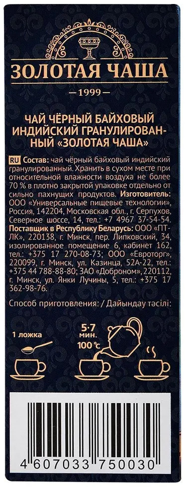 Золотая чаша Чай чёрный байховый индийский гранулированный