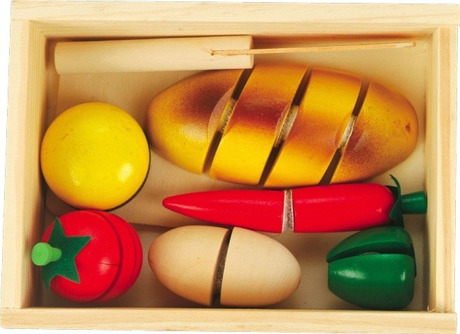 Мир деревянных игрушек Набор "Готовим завтрак", малыйВ данный момент этот товар отсутствует в продаже. Возможно, у нас найдется аналогичный или похожий товар здесь. Прекрасно подойдет для малышей, которые ещё не умеют обращаться с настоящим ножом, для тренировки. Но будет интересна и для более старших детей, набор поможет разнообразить ролевые игры. Готовим завтрак. С помощью безопасного деревянного ножичка и разделочной доски, изготовленных из массива дерева, малыш сам сможет «разрезать» батон , яблоко или яйцо, а затем «склеить» их вновь для новой игры. В наборе кроме доски и ножа, еще 6 ярких деревянных игрушечных «продуктов питания»: батон, яйцо, помидор, яблоко, гамбургер и морковка. Части игрушки соединяются между собой с помощью липучек. Кусочки «отрезаются» с легким треском, который делает игру ещё более привлекательной. Малыш с удовольствием "нарежет" овощи и сделает бутерброды для завтрака. Покормит своих зверушек, кукол и любимых родителей. Развивающая игрушка "Готовый завтрак "Малый" направлена на развитие координации движений, знакомство с понятиями "часть" и "целое", пространственное и логическое мышление, развивает мелкую моторику, внимание, память. Помогает изучить основные цвета и начальные навыки счета. Был один продукт - разрезали на 2 части, 3 части, четыре. |