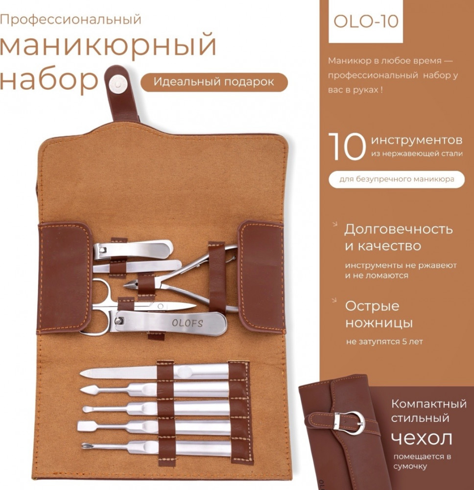 Профессиональный маникюрный набор OLO-10 — всё, что нужно идеально для ухода! Хотите, чтобы ваши ногти всегда выглядели безупречно? OLO-10 — это качественный, стильный и компактный набор из 10 инструментов, который обеспечит вам салонный уход в любом месте!