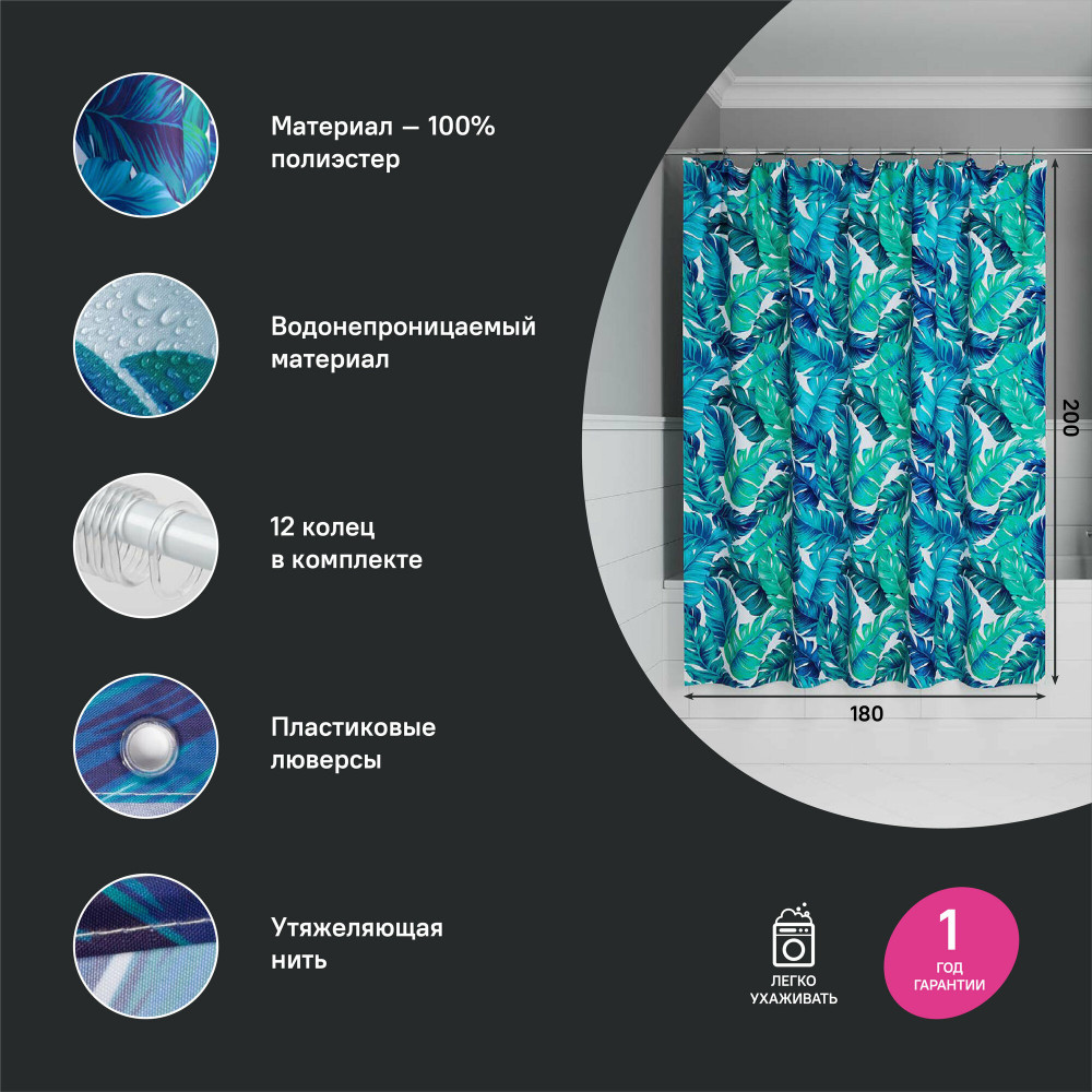 • легко ухаживать: шторку для ванной комнаты можно стирать в стиральной машине в деликатном режиме и гладить утюгом на минимальной температуре.