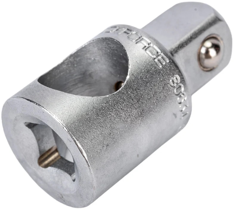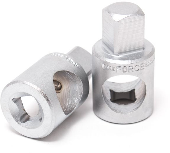 Адаптер-переходник 3/8"(F)x1/2"(M) от бренда RockForce имеет внутренний посадочный квадрат 3/8 дюйма (F) и внешний посадочный квадрат 1/2 дюйма (M). Наличие переходника обеспечивает выполнение работ по выкручиванию, закручиванию болтов, гаек и т.д. Изготовлен из высококачественной хромованадиевой стали Cr-V. Шариковый фиксатор переходника надежно удерживает насадки.