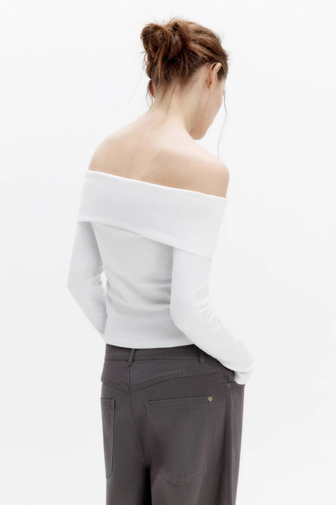 Однотонный джемпер с открытыми плечами добавит нежности и женственности любым образам. Носи его с мини-юбкой поверх широких брюк, смело выражая свою индивидуальность. Создавай с однотонным топом офф-шолдерс образ «офисной сирены», надевая с юбкой-карандаш и острыми лодочками. Создавай мягкие и удобные аутфиты с вязаным низом. Отдай дань 2000-м и носи его с остающимися в тренде капри. Идеальный вариант для образов на учебу или в офис. Лонгслив с открытыми плечами станет базой весенних аутфитов и подчеркнет женственность. Заверши образ удобной обувью и любимыми аксессуарами.