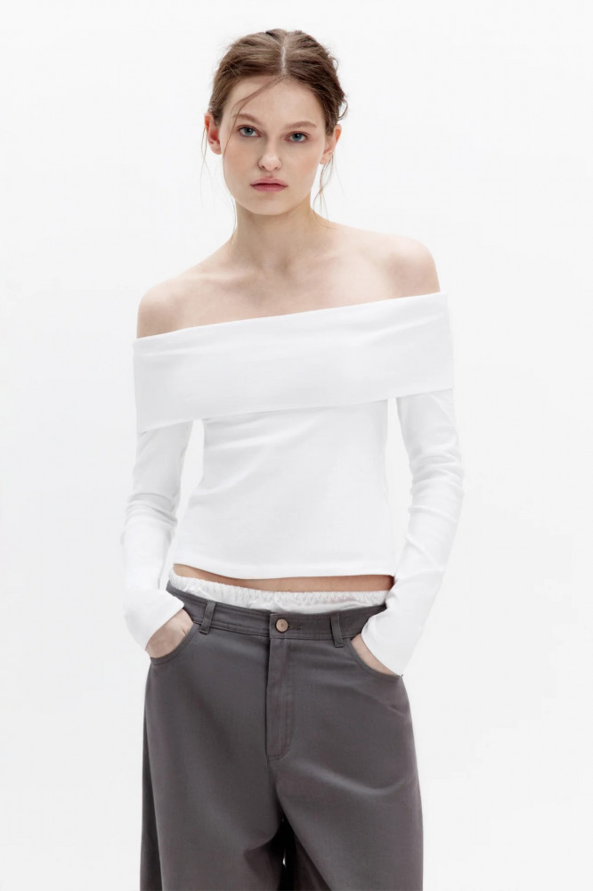 Однотонный джемпер с открытыми плечами добавит нежности и женственности любым образам. Носи его с мини-юбкой поверх широких брюк, смело выражая свою индивидуальность. Создавай с однотонным топом офф-шолдерс образ «офисной сирены», надевая с юбкой-карандаш и острыми лодочками. Создавай мягкие и удобные аутфиты с вязаным низом. Отдай дань 2000-м и носи его с остающимися в тренде капри. Идеальный вариант для образов на учебу или в офис. Лонгслив с открытыми плечами станет базой весенних аутфитов и подчеркнет женственность. Заверши образ удобной обувью и любимыми аксессуарами.