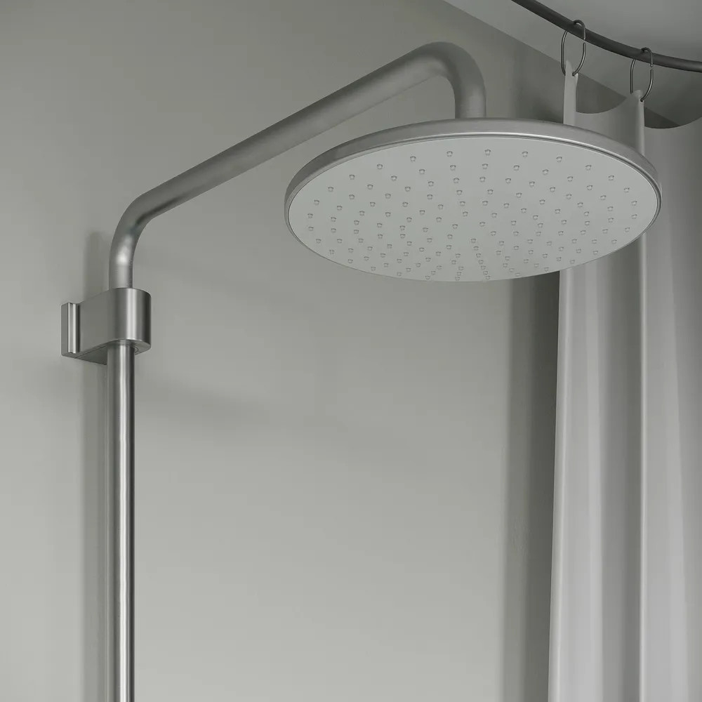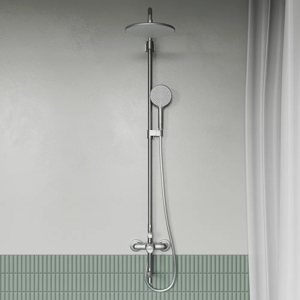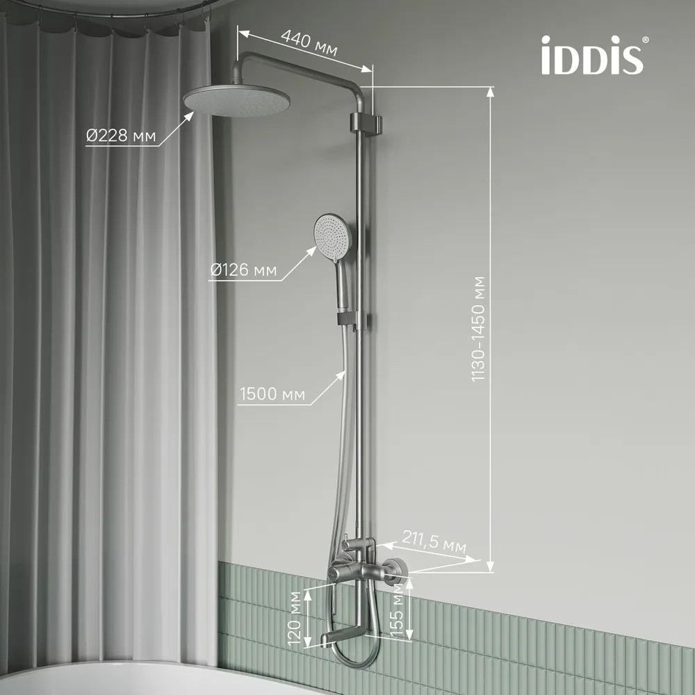 • штанга верхнего душа регулируется по высоте 113–145 см в момент установки смесителя, что позволяет в дальнейшем с комфортом принимать душ всей семье;
