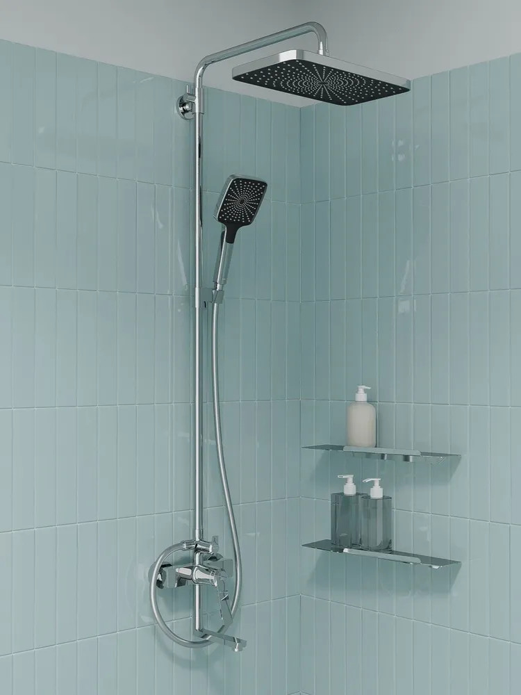 Хромированная душевая система Parker с большим тропическим душем – практичная и стильная, ее дизайн сочетает в себе трендовый минимализм форм и четкие грани. Ручка изящно смотрит вверх под углом, освобождая под собой место для более удобного захвата. Необычный рисунок из форсунок на лейках в виде паутинки превращает душевую систему в красивый акцент ванной.