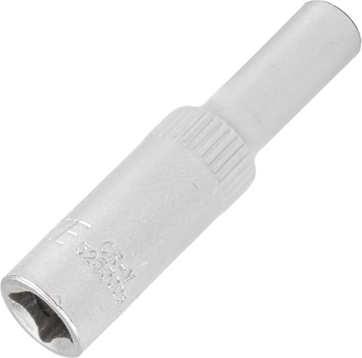 Торцевые головки глубокие (удлиненные) 1/4" применяются при обслуживании резьбовых соединений на относительно высоких шпильках и заглубленных деталях. Предназначены для монтажа, демонтажа резьбовых соединений. Имеет увеличенную длину и применяется для работы со сложными деталями удлиненной или углубленной формы, а также для обслуживания крепежа в труднодоступных местах. Головки изготовлены из стали CrV.