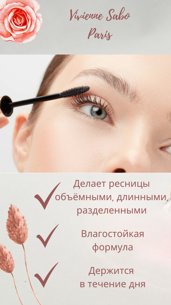 Vivienne Sabo Тушь для объема и удлинения ресниц водостойкая «Grand Noire», оттенок 01 черный