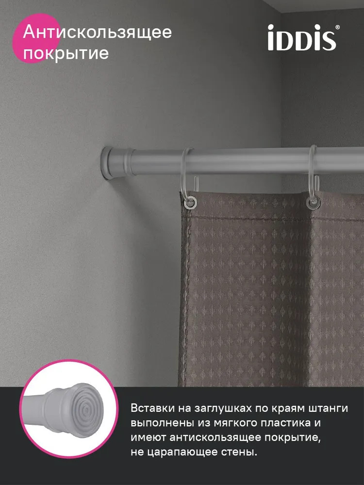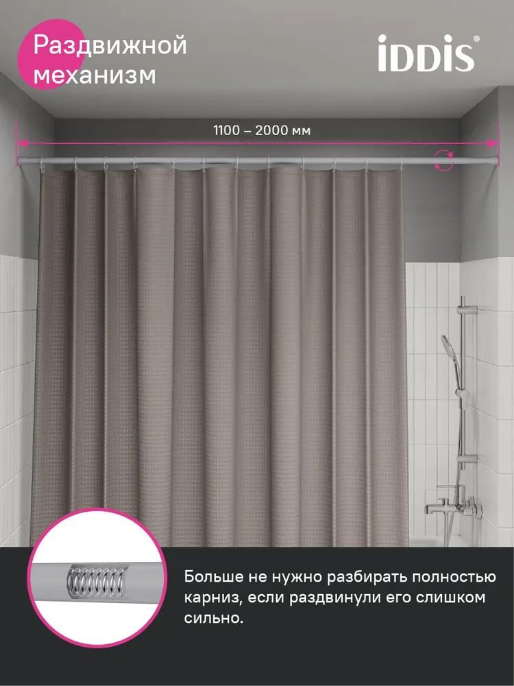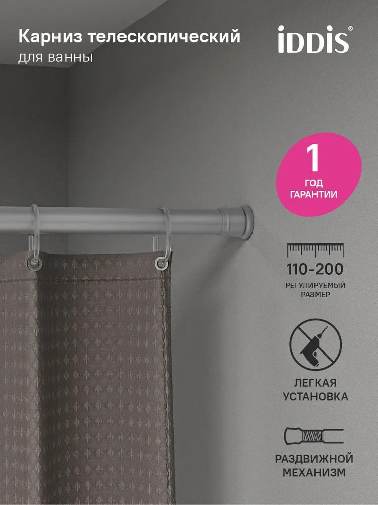 Iddis Карниз для ванной комнаты раздвижной телескопическийВ данный момент этот товар отсутствует в продаже. Возможно, у нас найдется аналогичный или похожий товар здесь. Серия: Elegante Карниз для шторы в ванную комнату серого цвета регулируется по длине от 110 до 200 см благодаря телескопической конструкции. Прост в установке, не требует сверления и использования дополнительных инструментов. Карниз плавно раздвигается и крепко фиксируется враспор, длина регулируется путем его закручивания в ту или иную сторону. Изготовлен из легкого и прочного алюминия. Имеет пластиковые наконечники, за счет которых не поцарапает стены в ванной. Гарантия на карнизы Iddis – 1 год. |