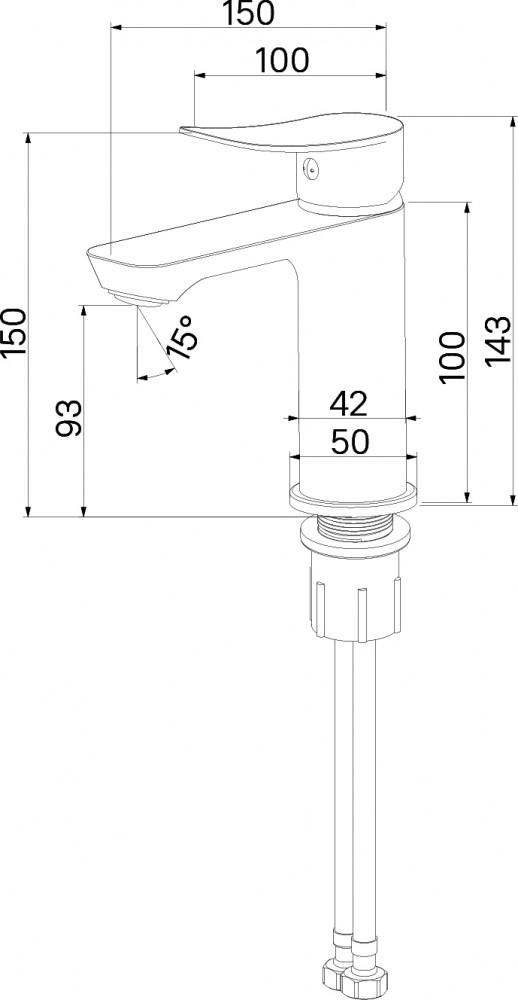 Увеличенный вынос излива направляет поток воды в самую удобную точку раковины, обеспечивая максимальную свободу движения в зоне умывания. В комплекте гибкая подводка и крепеж.