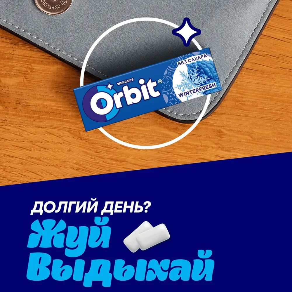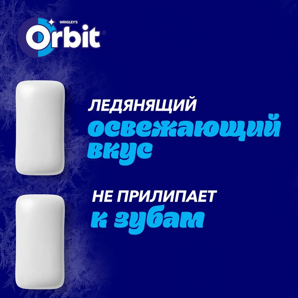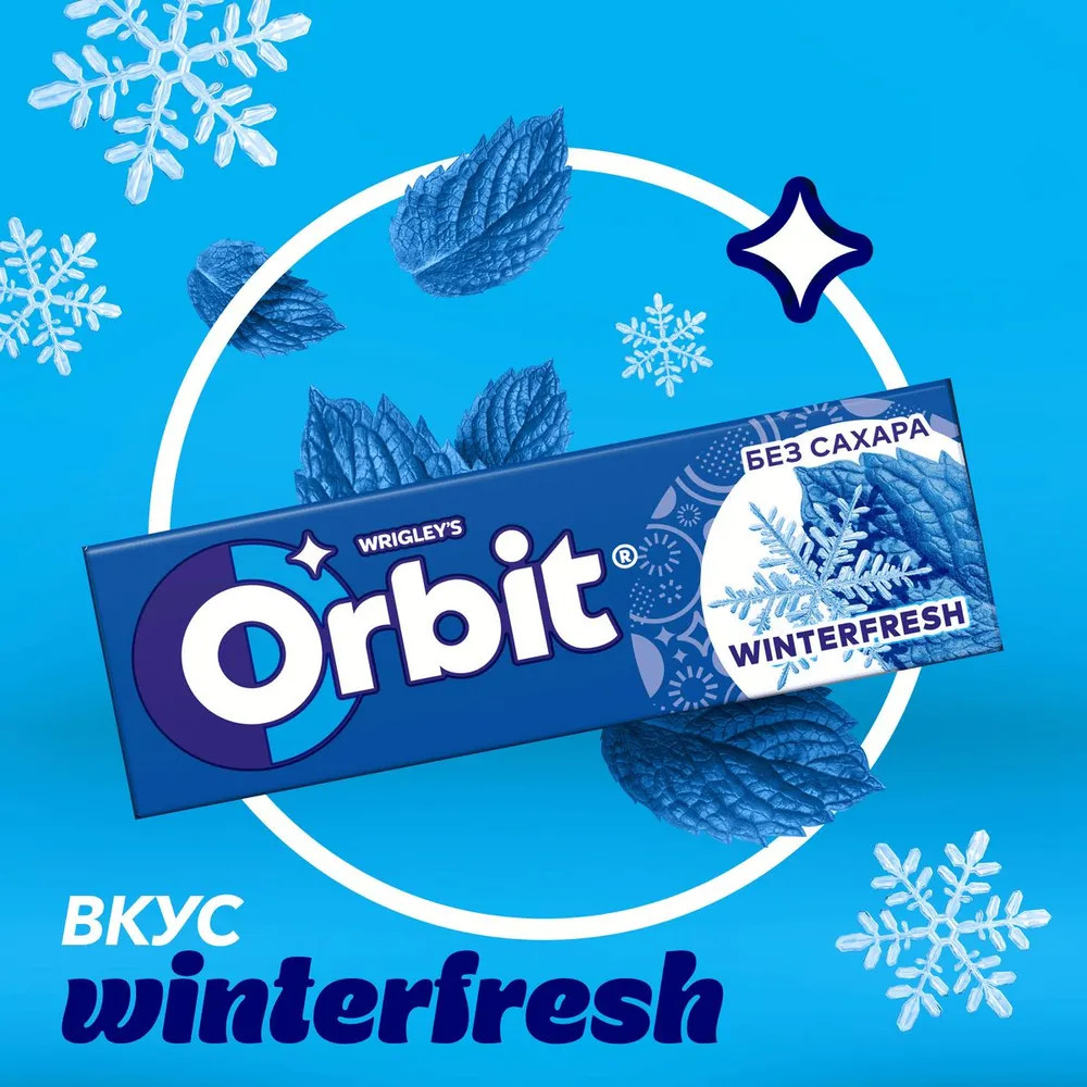 Жевательная резинка «Winterfresh» Orbit мята и ментол, без сахара. Мятная жевательная резинка Орбит Winterfresh — это яркий насыщенный вкус, великолепно освежает дыхание и делает вашу улыбку белоснежной. Жевательная резинка Orbit без сахара способствует поддержанию здоровья зубов: удаляет остатки пищи, способствует уменьшению зубного налета, нейтрализует вредные кислоты, усиливает процесс реминерализации эмали. Употребление жевательной резинки каждый раз после еды способствует поддержанию чистоты и здоровья зубов в дополнение к уходу за ротовой полостью с помощью зубной щетки.