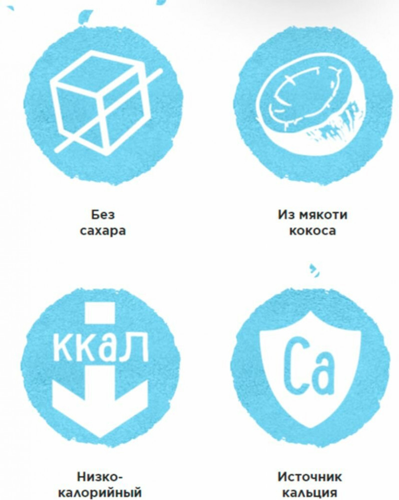Вода, кокосовые сливки (мякоть кокоса, вода), трикальций фосфат (источник кальция), ароматизатор натуральный, стабилизаторы (гуаровая камедь, геллановая камедь), соль. Может содержать следы сои и других орехов.